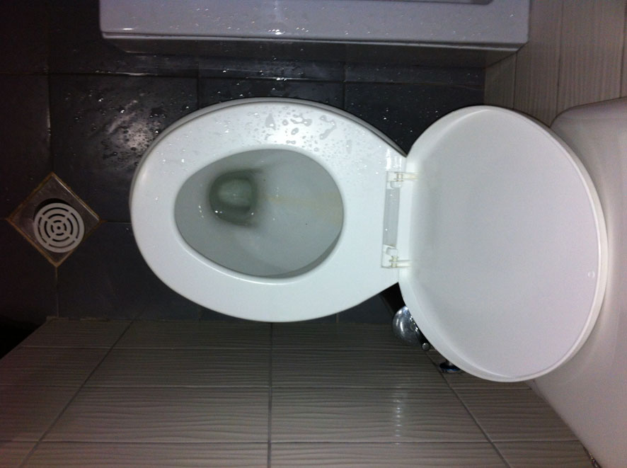 Toalettet er forresten en annen skål, bokstavelig talt. Etter en dusj ser det mer ut som om jeg har hatt store problemer med å treffe skålen i andre ærend.