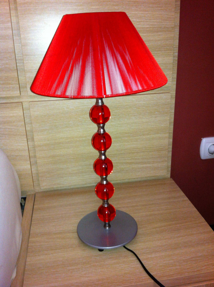 Denne bordlampen er sannsynligvis et fint stykke makedonsk interiørdesign. Den går i hvert fall igjen på hele hotellet – med orange kuler i plast og en pære som er gått…