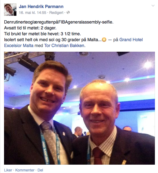 Når det kommer til hilsenen som jeg la ut på min private Facebook-konto, så var det selvsagt ikke ment å være en offisiell hilsen, noe jeg tror også Pål Berg skjønner, men mer ment i et mer privat format med «glimt i øyet». Men jeg reagerer selvsagt på at når flere dager er avsatt til de offisielle møtene, og det er unnagjort på 3 1/2 time, så kan man spørre seg om FIBA Europe burde kunne utnyttet potensialet i møteplassen litt bedre. Men relasjonsbyggingen i seg selv har også en verdi, og kan være en døråpner ved neste korsvei Dette spesielt sett i lys av at samtlige forbund, sammen med presidentene og generalsekretærene i så vel FIBA Europe som FIBA World er samlet på et brett. Da må vi være der, vi også.