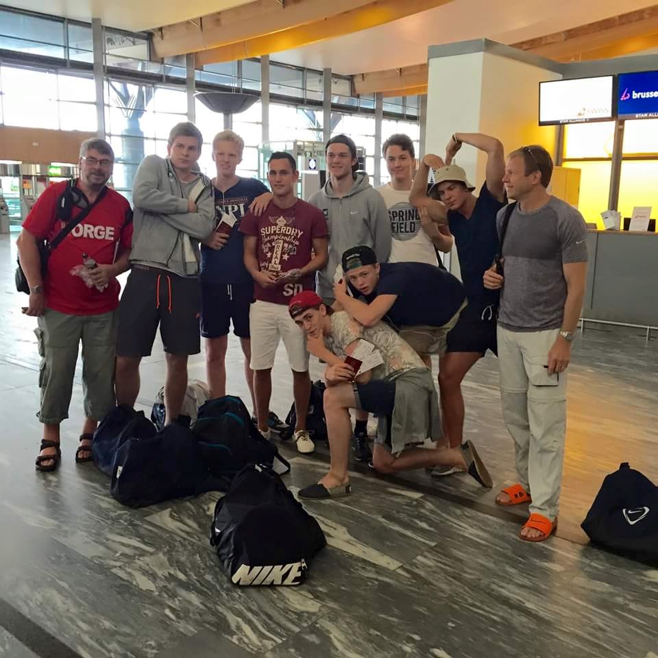 I dag dro det som kunne vært Norges U18-landslag gutter til USA. I stedet burde de vært på vei til Østerrike og B-EM om en uke. Det er en fin gjeng som når drar over dammen. Sindre, Sondre, Sander, August, Mats, Harald, Gaute og Mattis blir møtt av Anders på amerikansk jord. Fin gjeng, og ganske sikkert en fin tur.