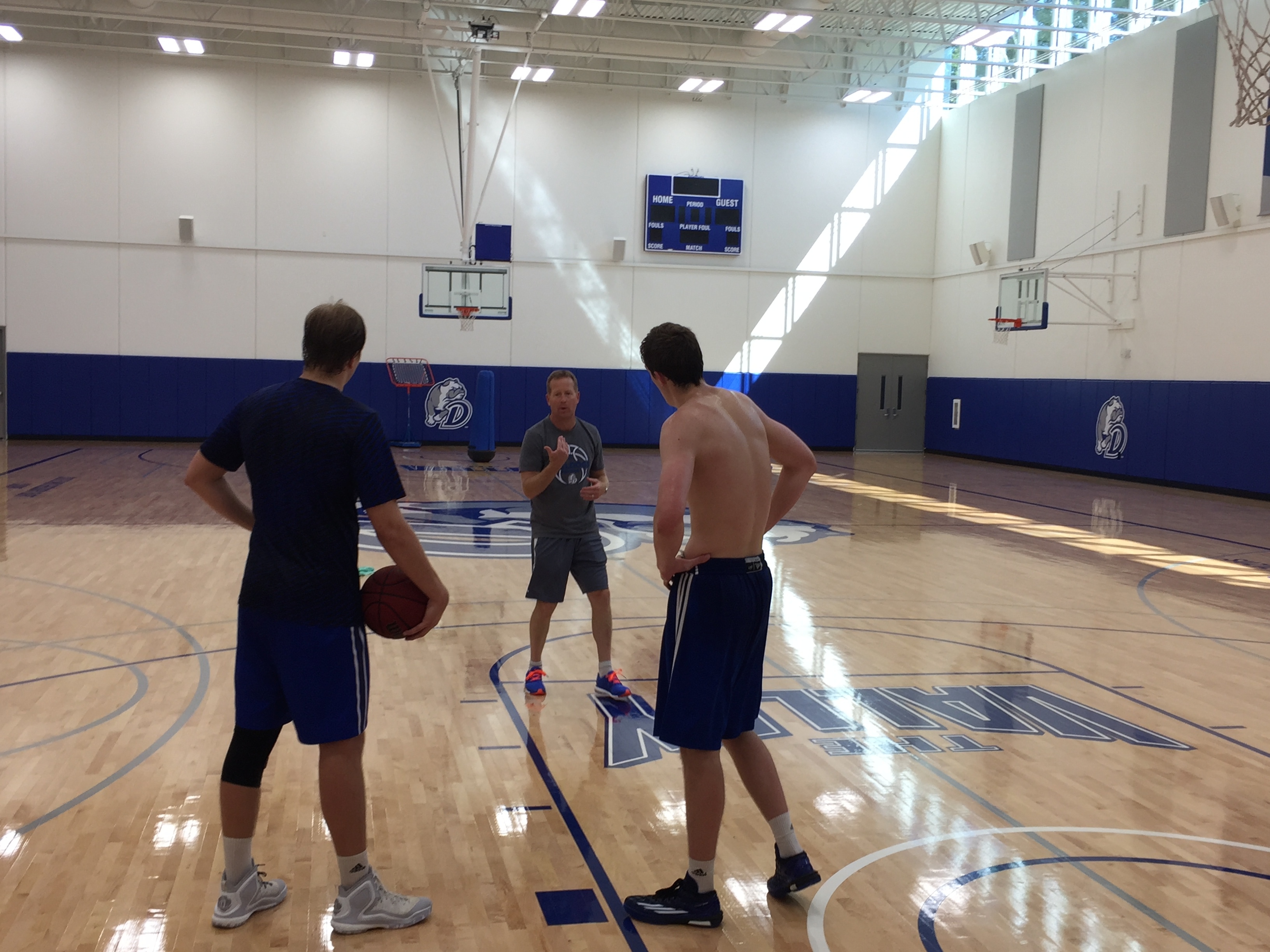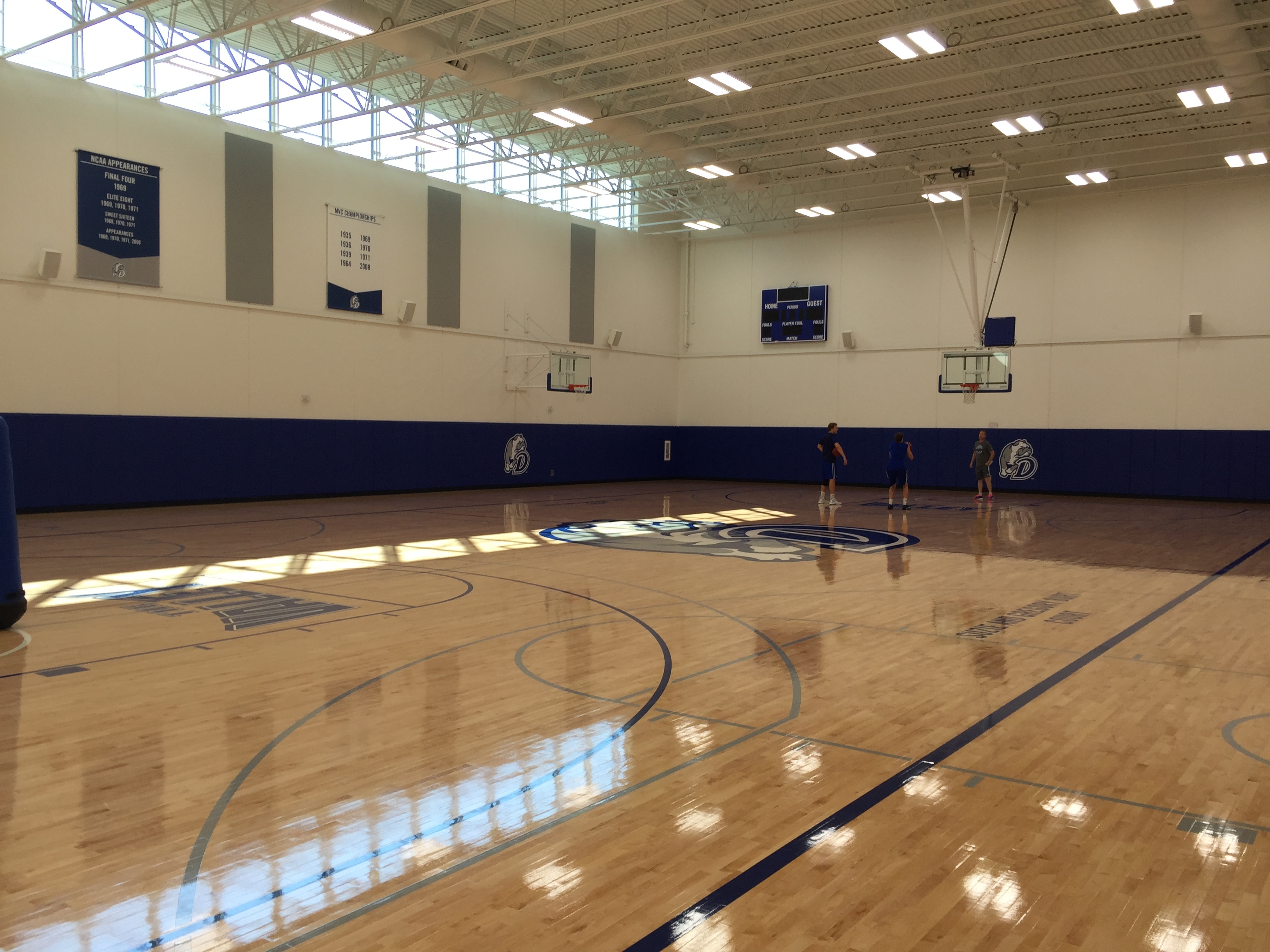 Treningshallen er stor, og da mener jeg irriterende lekker, stor, velutstyrt – man blir lett misunnelig på sånt. I hjørnet står selvfølgelig en «The Gun» skytemaskin, og det er utstyr for alt man måtte finne på av driller og øvelser. Damelaget har en egen hall som er kliss lik, og kampene spilles i Knapp center som rommer 7000 tilskuere.