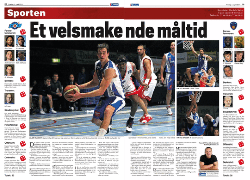 K.W. fikk rett: Avisutklipp kan gi motivasjon, men det ble altså omvendt. For da vi kom til Tromsø den første finalehelgen, ble vi møtt av en analyse over to sider i lokalavisen, med terningkast og det hele. Bærum ble levnet små sjanser, og sportsredaktøren mente dette kom til å bli en enkel treretter – forrett, hovedrett og dessert: 3-0 i kamper.