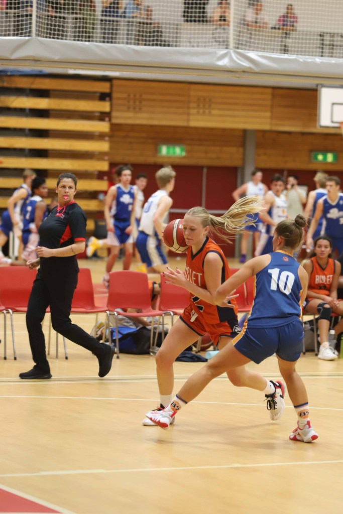 Sofia Koch er «up & coming» i Bærum Basket. Født i 05, men allerede med kamper der han har startet for BLNO-laget. Foto: Maja Stenerud