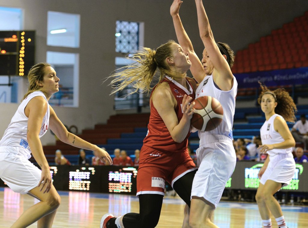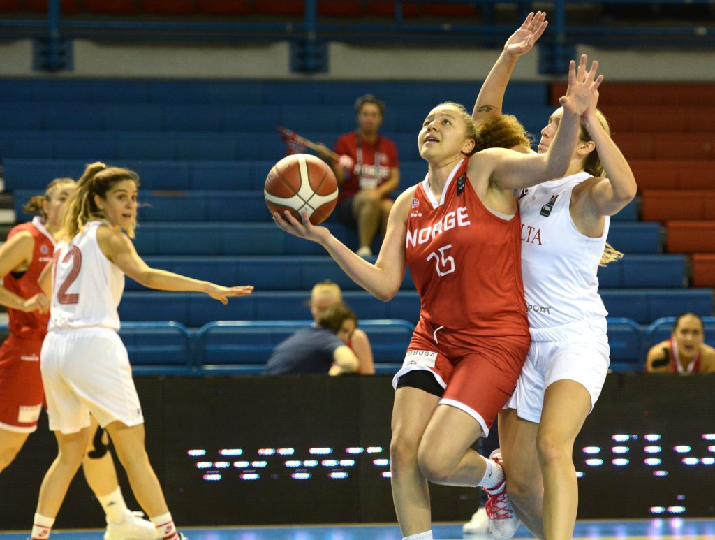 Stine Austgulen mot Malta. Hun scoret 3 av Norges 64 poeng