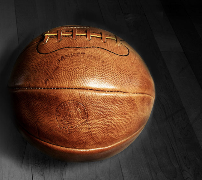 Først fotball En basketball fantes selvfølgelig ikke siden spillet var helt nytt. En fotball gjorde nytten de første årene, men den var tung og det var dårlig sprett i ballen.