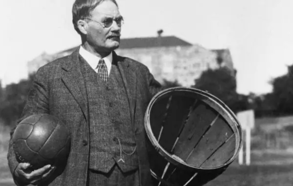 James Naismith var ikke så opptatt av utstyr da han oppfant basketball i 1891. Ledelsen ved Springfield College hadde bedt Naismith finne på noe som kunne sørge for at elevene var engasjert i fysiske aktiviteter også i vintersesongen. Basketball ble løsningen. Naismith snekret sammen 13 regler som definerte hvordan basketball skulle spilles, men utstyr var det verre med.